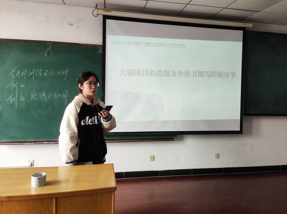 最后,由2022年获批国家级大创项目的两位项目负责人郑之星、张馨元同学分别以“如何与工科项目合作创新”、“选题创新点与申报书撰写”为主题,与在场同学们进行了交流。