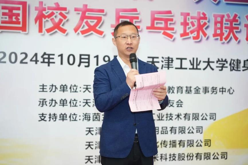 2024年10月19日,我校第二届“天工缘”杯全国校友乒乓球联谊赛在学校旭日风雨馆成功举办。副校长沈浩鹏出席开幕式并致辞,校友与教育基金事务中心、体育工作部等相关职能部门和学院主要负责同志参加活动。本届赛事由天津校友会承办,共有来自全国多地的12支校友队伍参加了混合团体赛。