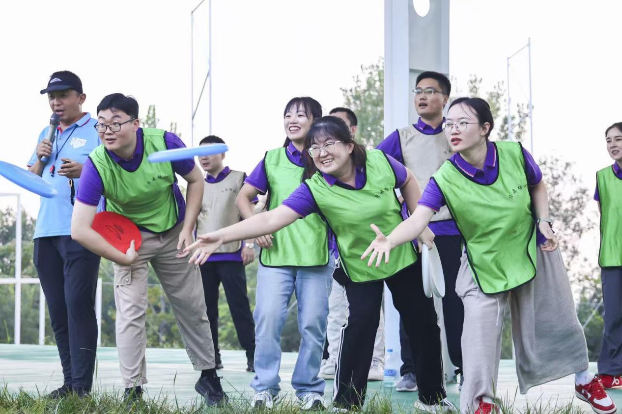 13日下午,活动正式开始,在教练的引导下学生们迅速进入状态。首项“破冰”活动轻松愉快,打破了初识的尴尬,让大家在欢笑中建立起初步的信任与默契。随后进行的“飞盘嘉年华”项目激发了全员的活力与激情。“呼吸的力量”和“七巧板”两项任务进一步考验团队的智慧与协作。晚间,“旱地冰壶”比赛将第一天活动推向高潮,这项融合策略与技巧的运动,既紧张又充满趣味。各队斗智斗勇,在反复尝试与总结中不断提升团队作战能力,也进一步巩固了日间所学的协作理念。
