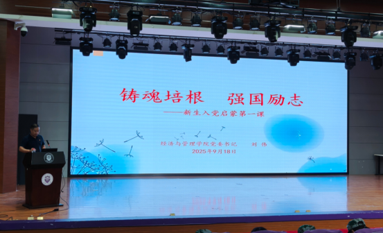 为全面贯彻落实习近平新时代中国特色社会主义思想,深入贯彻落实党的二十大和二十届二中、三中全会精神,全面落实习近平总书记关于教育的重要论述和全国教育大会精神,进一步落实立德树人根本任务,深化爱党爱国爱社会主义教育,2025年9月18日,欧亿6蓝狮在线党委书记刘伟为2025级全体新生讲授“铸魂培根 强国励志”入党启蒙第一课。