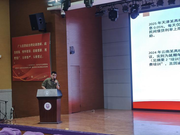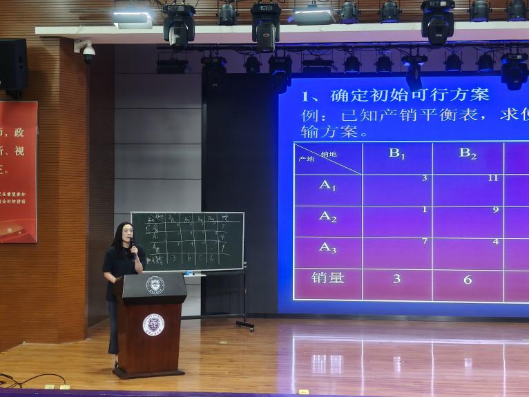 会上,来自工商管理系、会计系、金融系、国际经济与贸易系、管理科学与工程系的五位教师代表依次登台,结合各自学科特点与课程内容,展示了精心打磨的教学片段,呈现出丰富多元的教学风格与创新实用的教学思路。其中,工商管理系谢觉萍老师以创业类课程为切入点,系统分享了“体验式+数智化”的课程设计理念。会计系强殿英老师则聚焦《审计学》课程中的核心概念——“审计的定义”展开教学演示。金融系鲁达非老师针对金融计算类课程的教学难点,以“理论联系实际”为核心设计教学内容。他在展示中以日常生活中常见的“理财产品收益计算”“贷款还款规划”为例,通过现场演算与数据对比,直观呈现金融计算的方法与应用场景,让原本抽象的数学公式变得生动易懂。国际经济与贸易系石芝玲老师采用“故事导入法”开展海上运输保险课程教学。管理科学与工程系王玲老师在《运筹学》相关课程的展示中,以“最小元素法确定初始可行方案”为教学重点,通过清晰规范的板书设计,一步步拆解操作步骤,从“确定供需关系”“选择最小成本元素”到“分配资源并调整方案”,为全院教师提供了清晰的实操教学示范。
