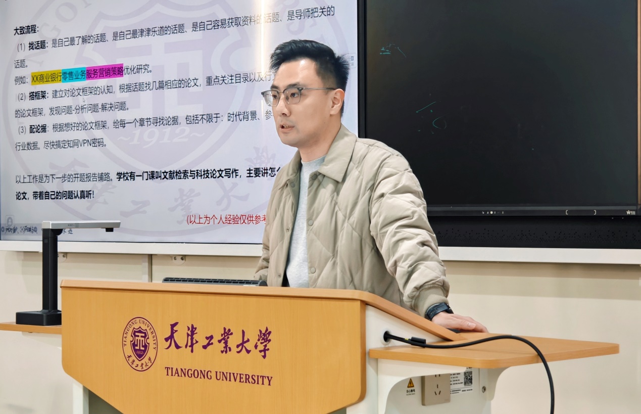 2023级非全MBA王煦作为特邀嘉宾,围绕“目标倒推法”在学业管理中的实践应用展开分享。其中,王煦详细讲解了如何以论文截止日期、课程考核要求为锚点,反向梳理制定学习计划;分享了自己参与并发起的校园文化活动、行业交流沙龙等经历,并着重介绍了“如何整合校园资源”“在实践中拓展视野、积累人脉”,为学弟学妹们提供了多元化的成长思路。同学们结合自身求学困惑,就“如何与导师建立高效沟通机制”“论文选题阶段如何规避行业数据壁垒”“工作出差期间如何保障学习进度”等痛点展开讨论。